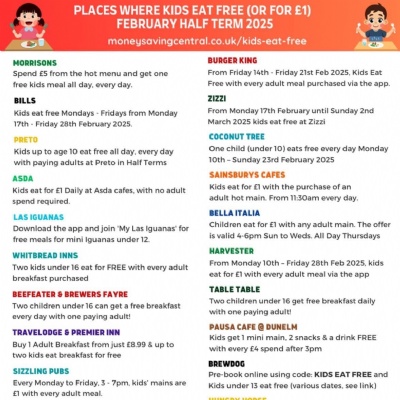 Places where children can eat for free (or just £1) this February half term
